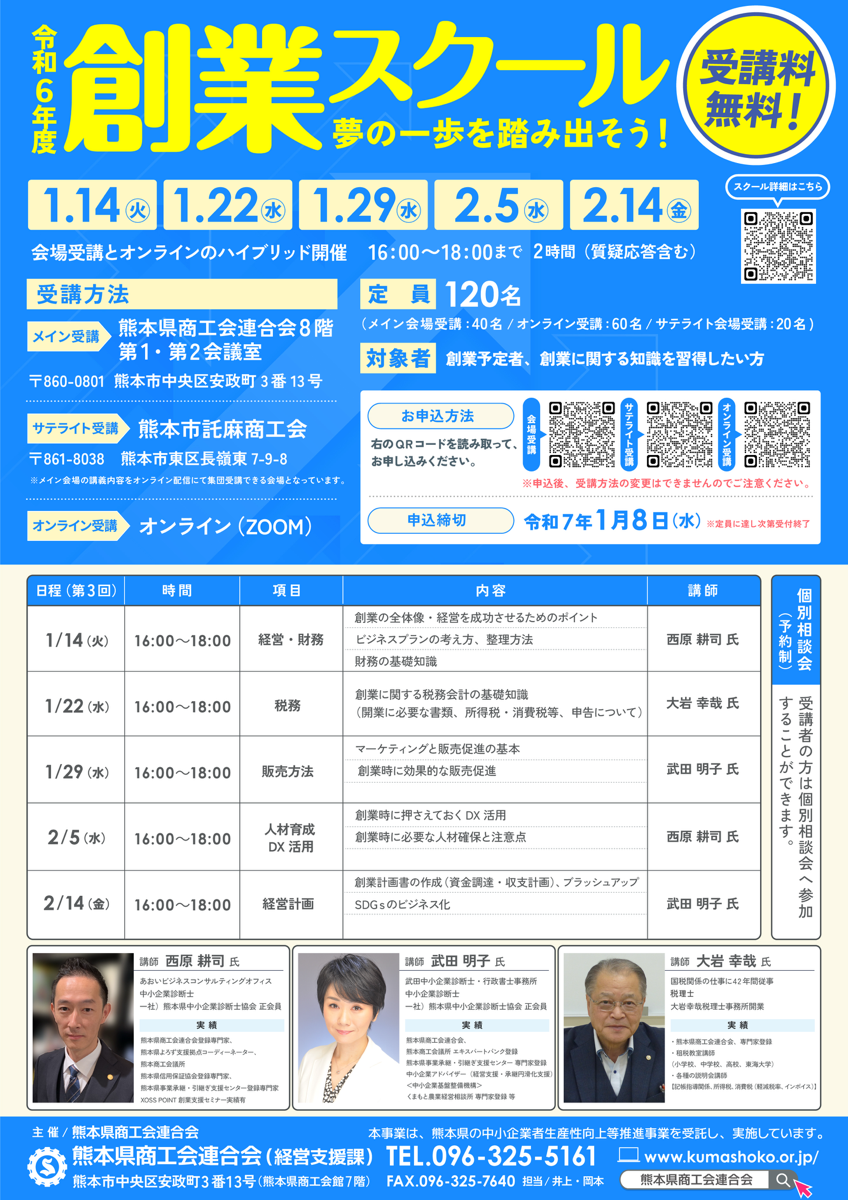 熊本県商工会連合会主催【第3回 創業スクール】開催のお知らせ